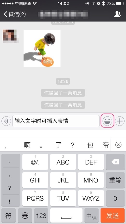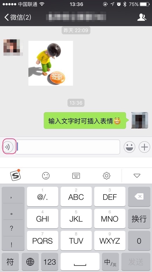 界面会向上折叠并显示键盘,您可以输入您要说的话,或点文本框右侧“笑脸”按钮插入表情