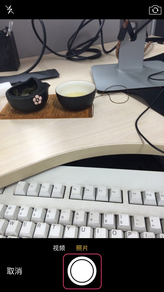 微信会调用相机功能,这里可以拍照和拍视频,推荐您只在这里拍照,发视频通过另外功能实现,移动您的手机使要拍摄的画面出现在手机屏幕中,取好景后点击界面下方的白色“圆形”按钮完成拍摄。