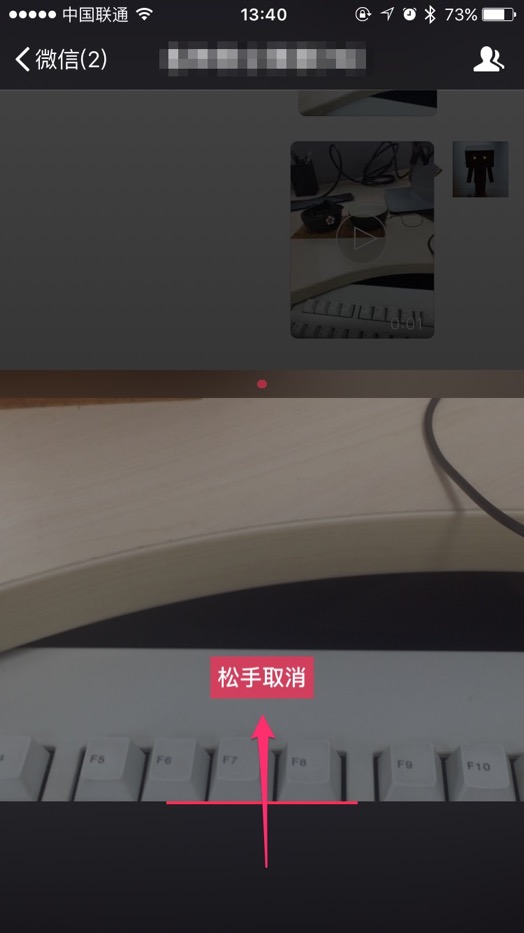 如果您想中途取消拍摄,请在不松开手指的情况下向上滑动,直至屏幕中出现红色的“松手取消”字样,松开手指,即可取消拍摄,之前拍摄的内容也不会发出。