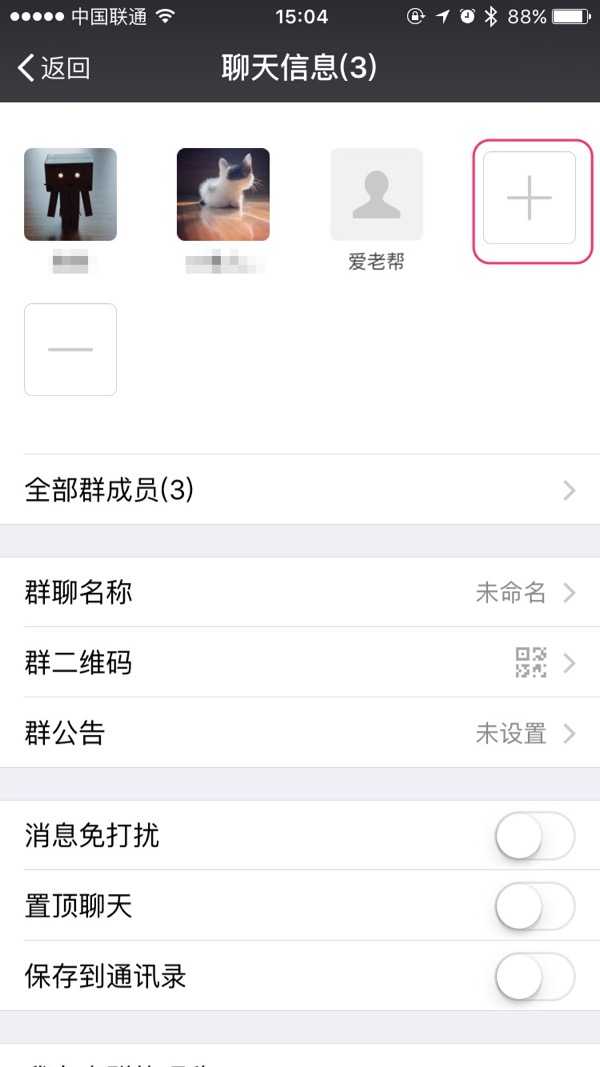 界面会跳转到“聊天信息”,点击“加号”按钮添加新成员,操作方法与键群时一样,参见“新建群聊”步骤3-4