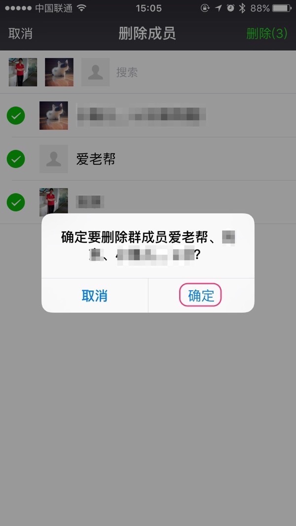 此时询问您是否确定要删除选中成员,点“确定”完成删除