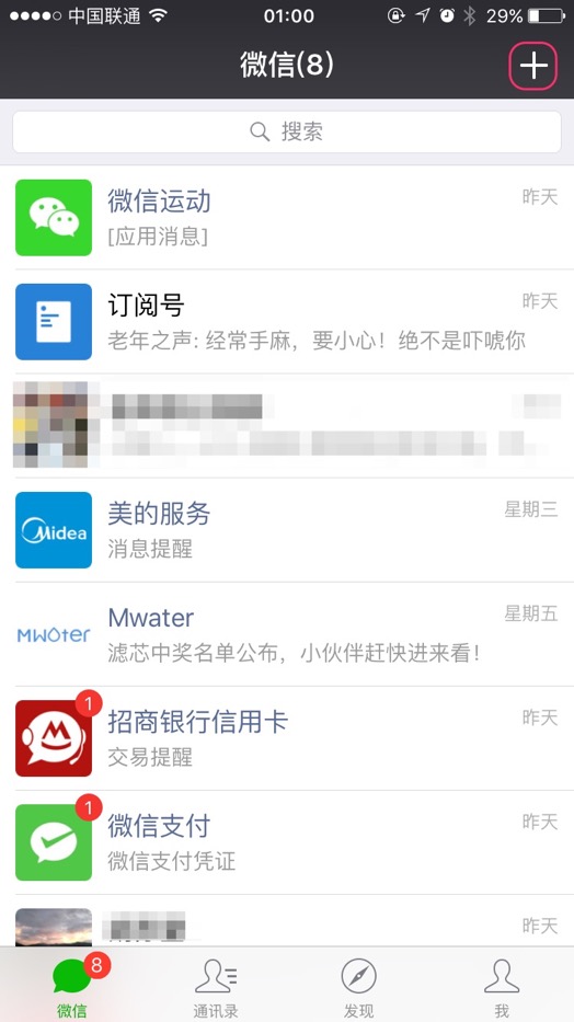 打开微信,点击右上角“加号”图标