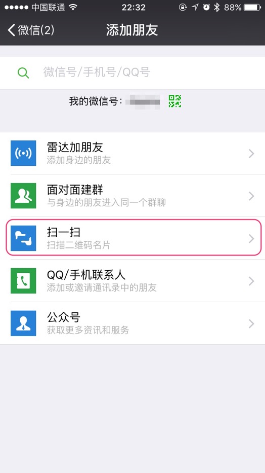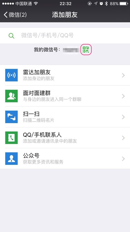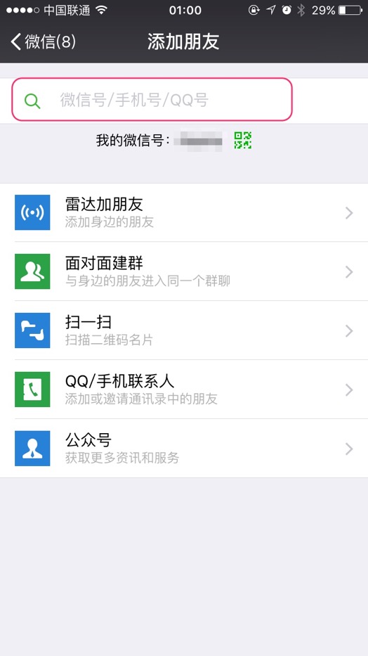通过搜索添加好友时请输入完整的手机号、微信用户名、QQ号,否则搜索结果只会显示公众号。