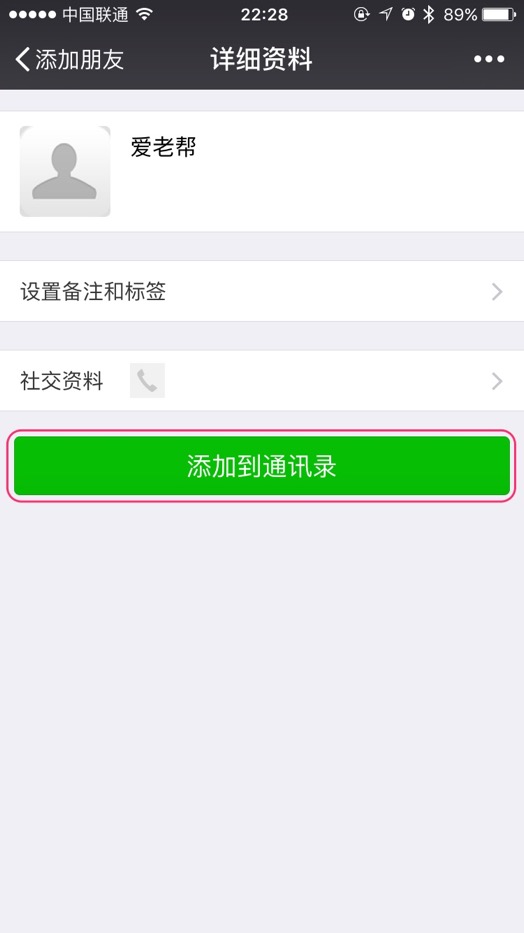 如果您输入的信息正确,则会跳转到您好友的信息页面,我们要添加的好友是“www.38365-365.com”,点界面下方的“添加到通信录”。