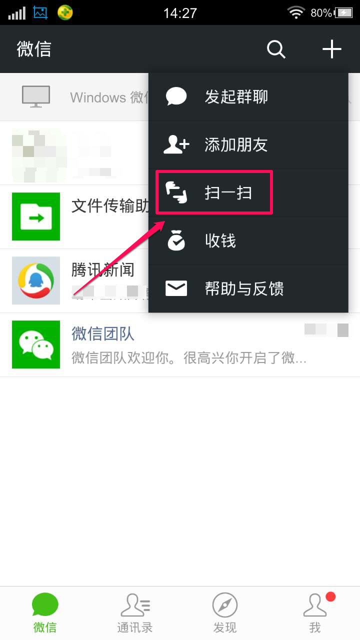 打开手机微信,选择“扫一扫”功能
