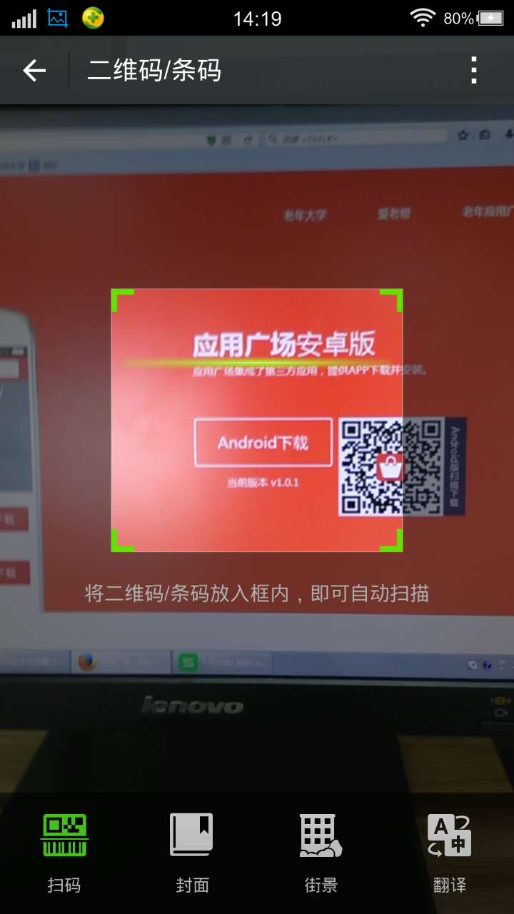 将摄像头正中央对准电脑上显示的二维码