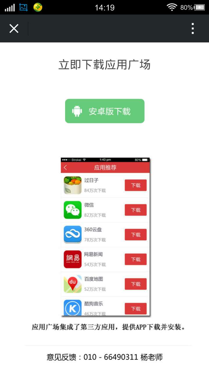 “应用广场”现阶段提供安卓版本下载,请先确认您的手机是安卓系统