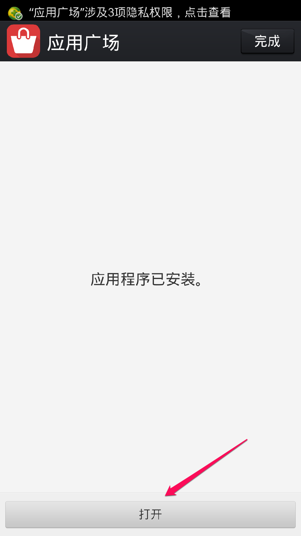 安装完毕后,选择“打开”