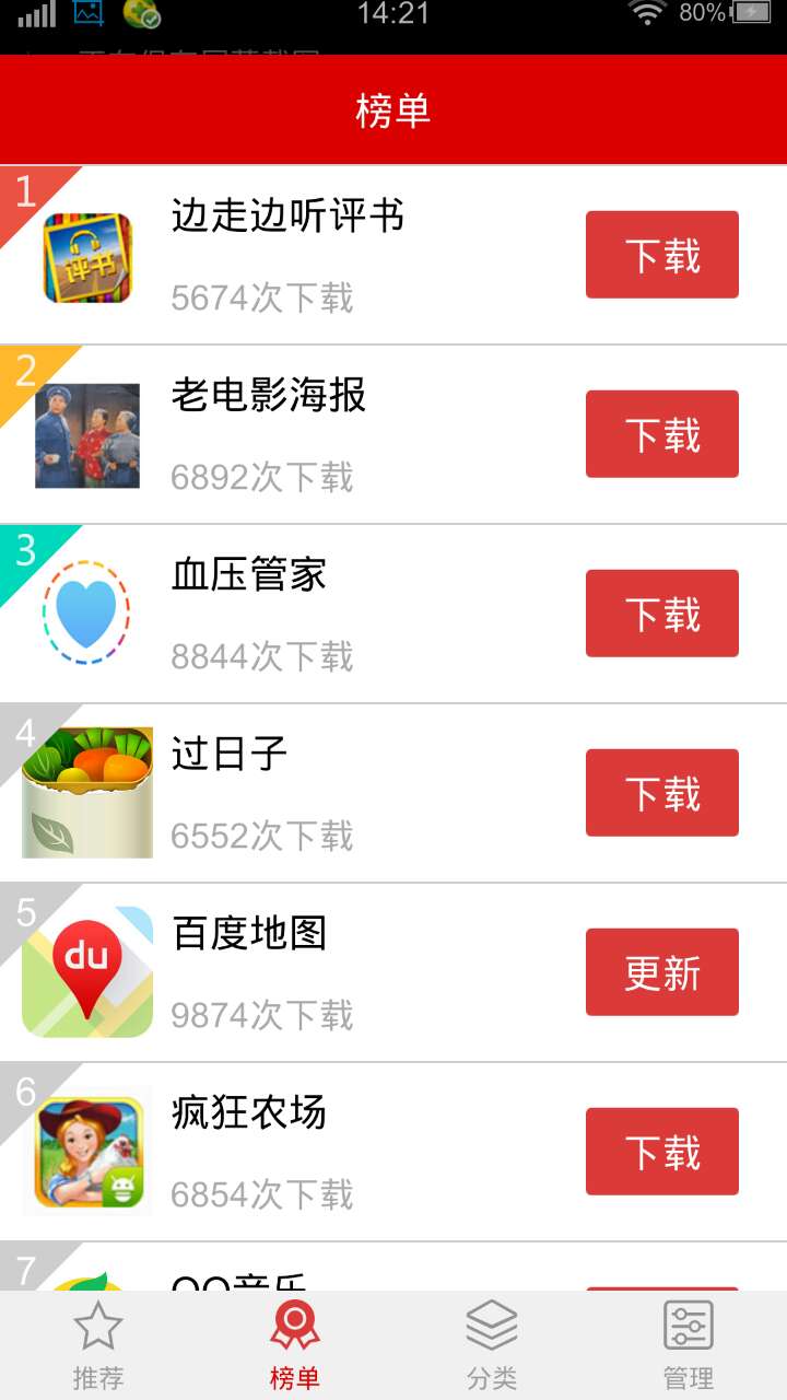 选择“榜单”,这里有根据下载量排列的推荐APP排行榜