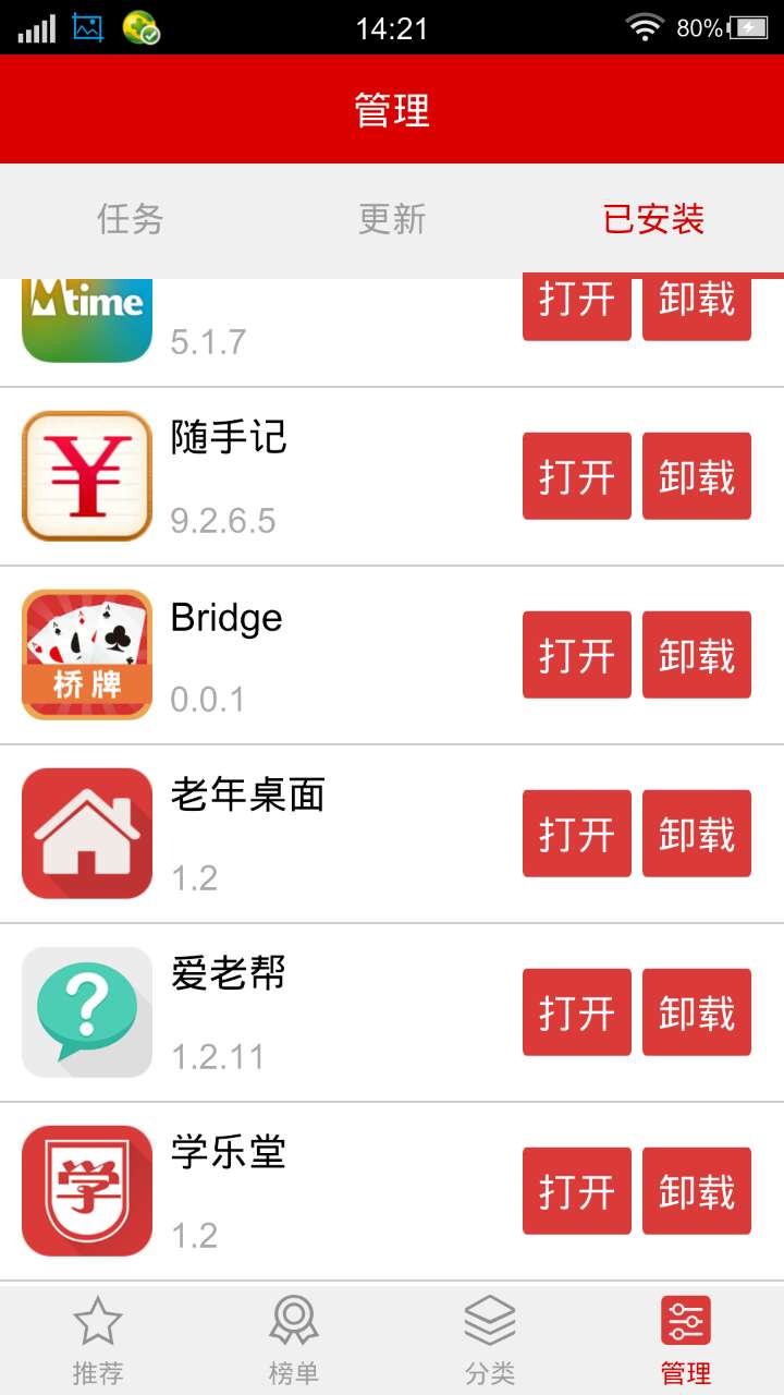 在”已安装“选项中,我们可以管理已经安装在手机上的各类软件