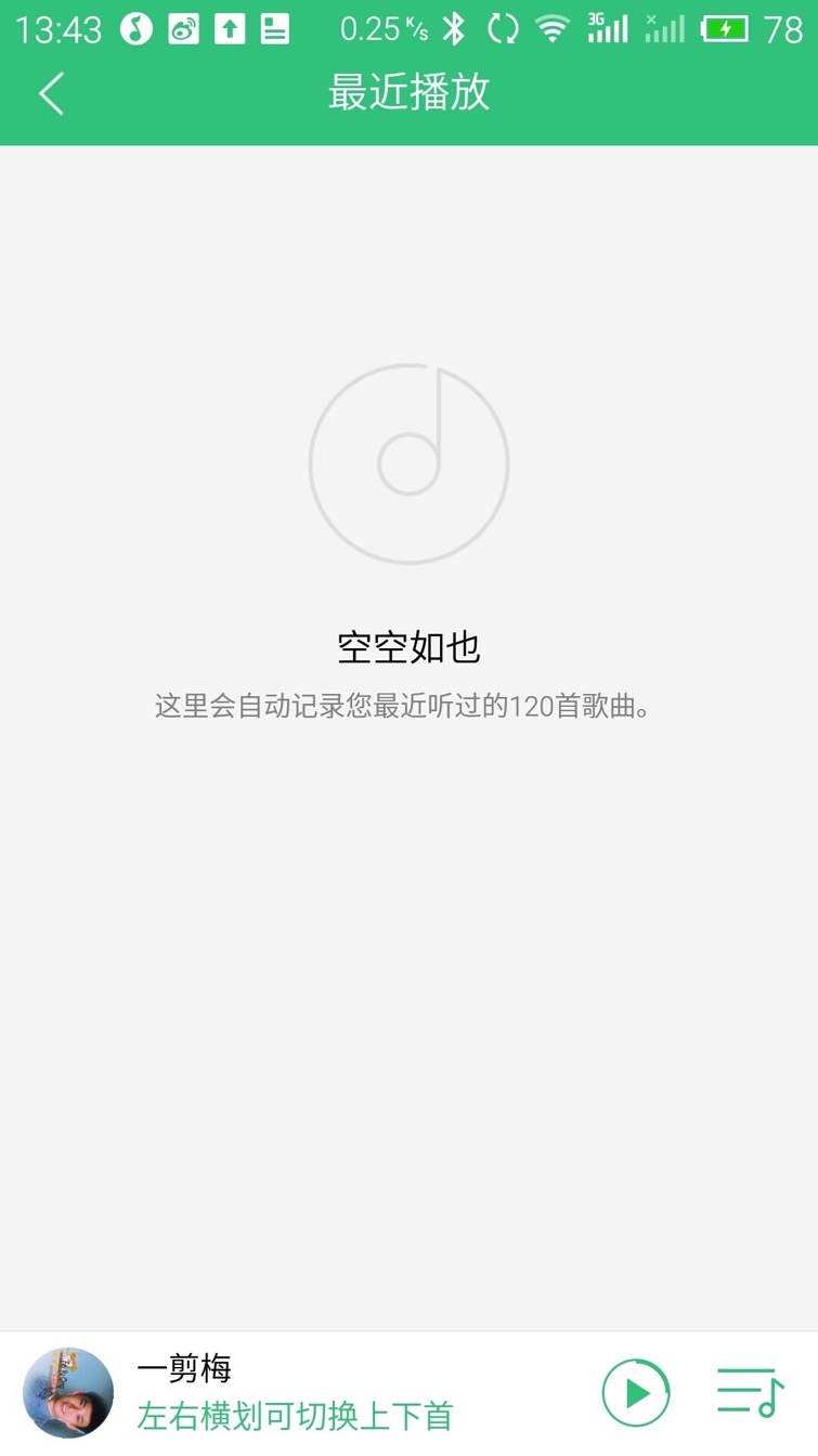 音乐播放后界面不会跳转,您可继续点击其他条目试听。正在播放的音乐信息显示在界面最下方,这里是“快速播放区域”,显示在每个界面下方,您可以在这里控制音乐的播放、暂停。点“快速播放区域”可打开播放器