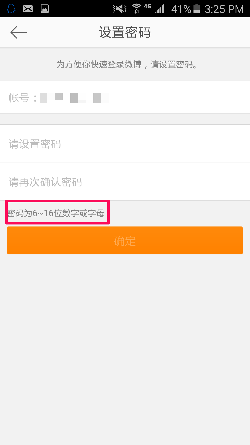 接收验证码短信,并将6位数字的验证码填入微博输入框内,点击确定。如果您没有收到短信,请选择重新发送验证码
