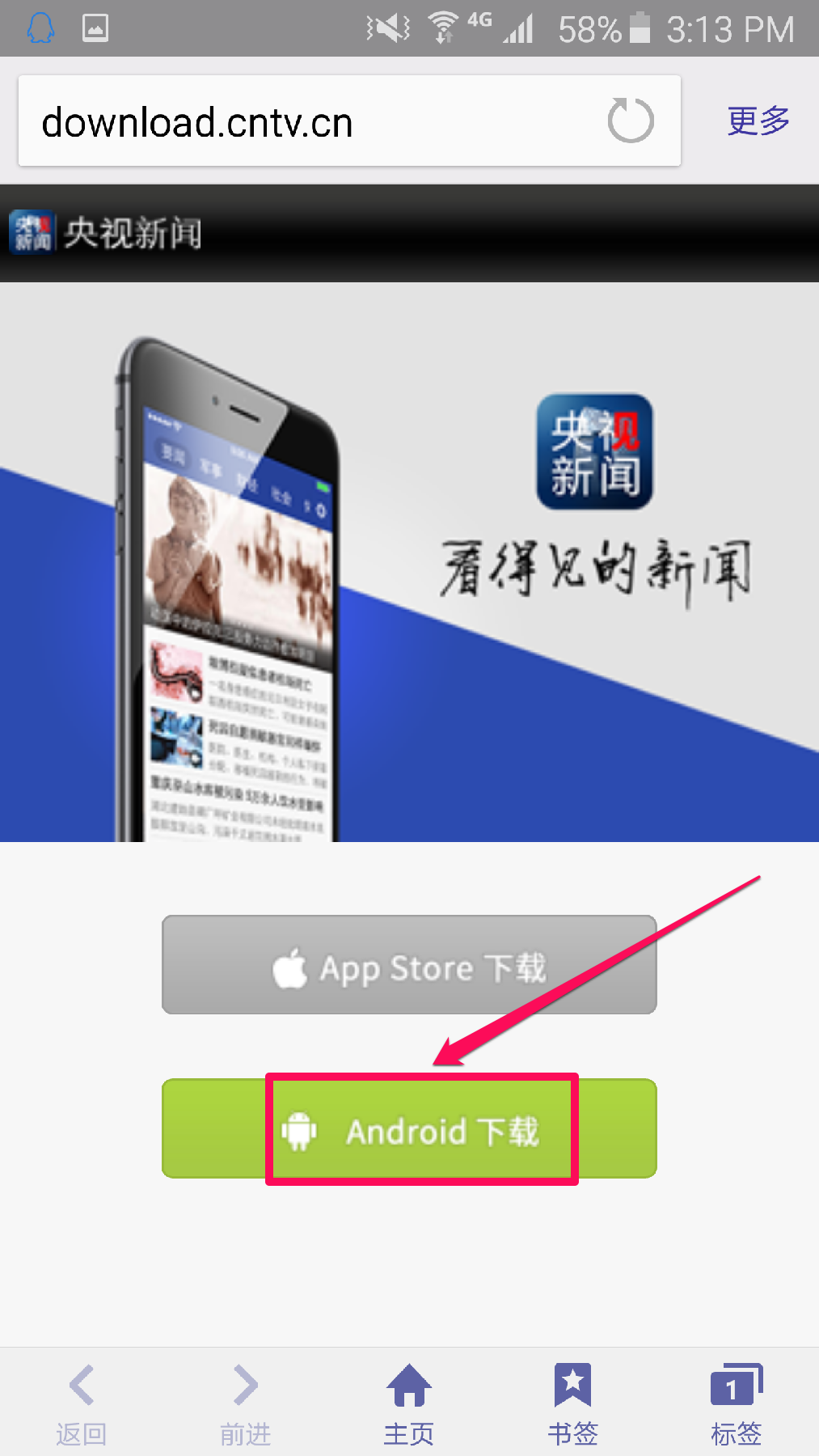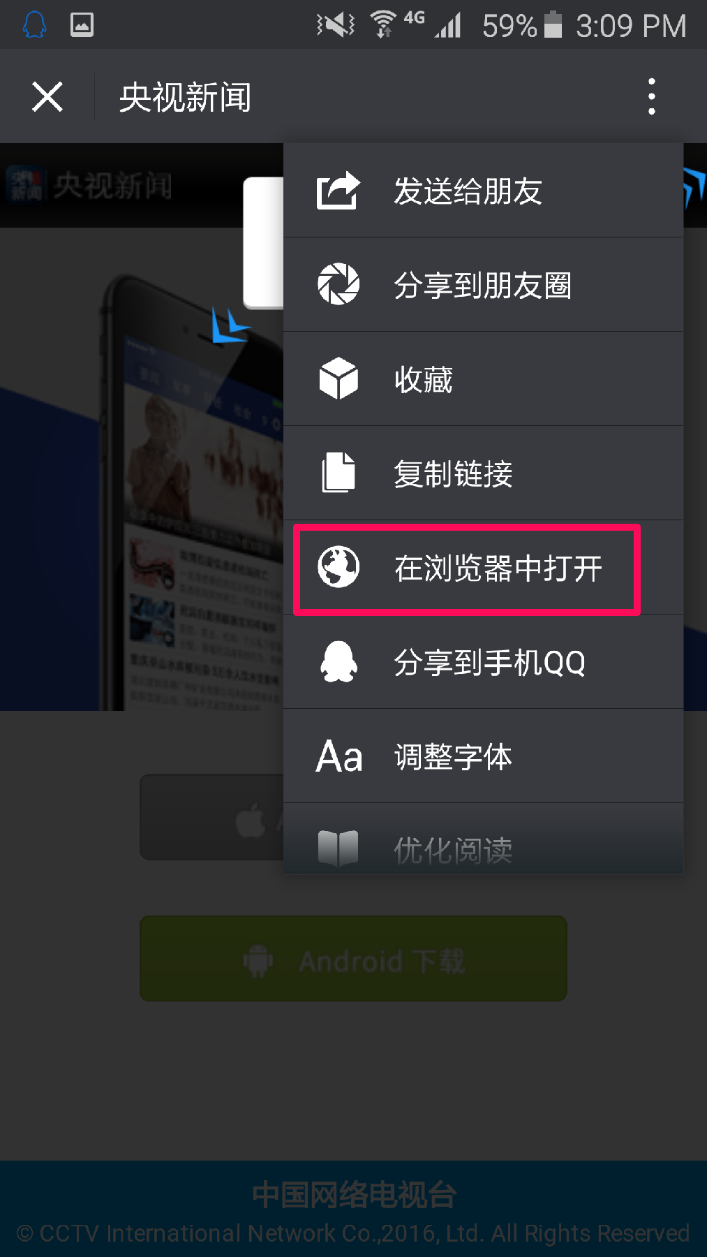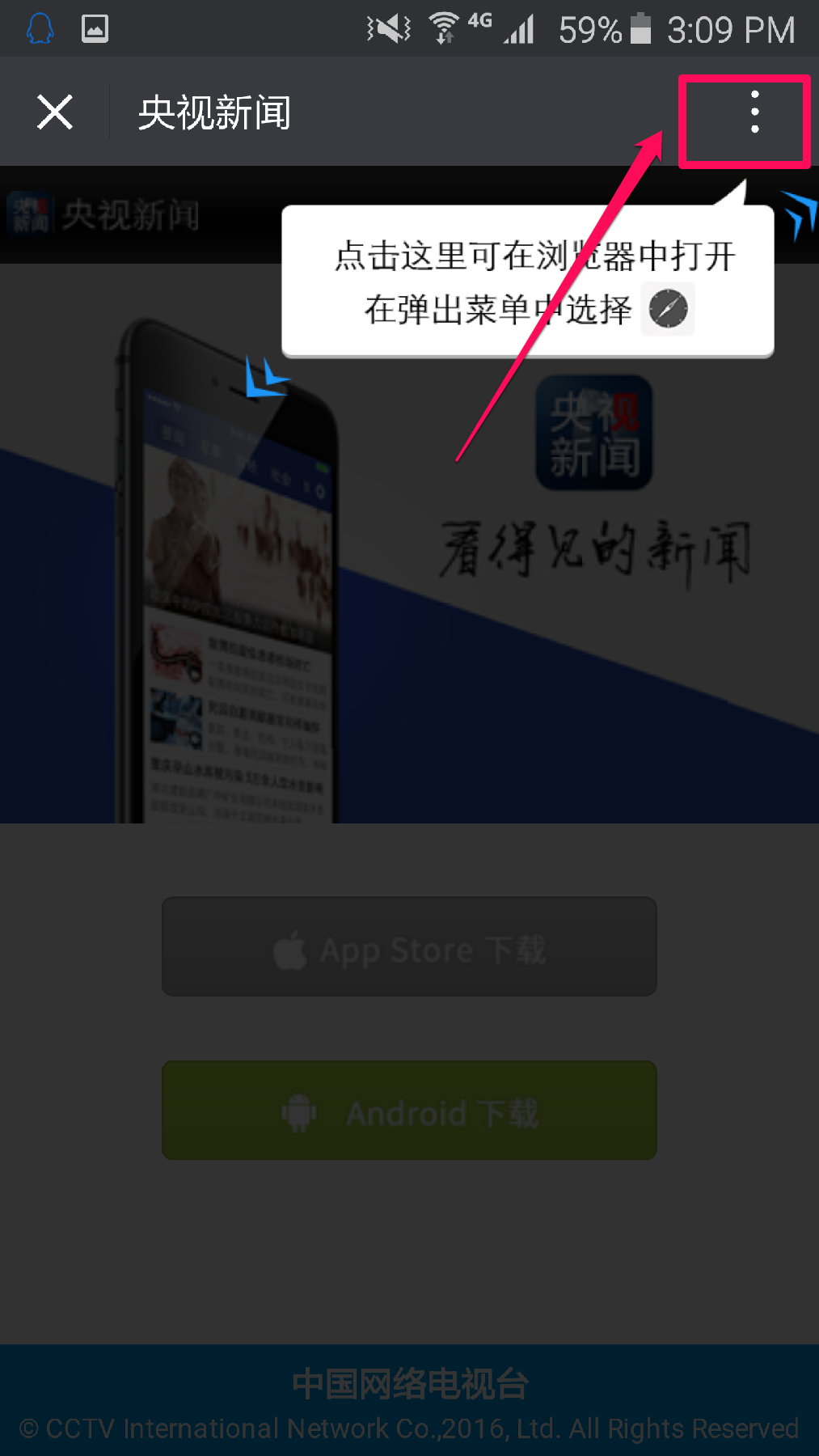 安卓用户请选择”在浏览器中打开“