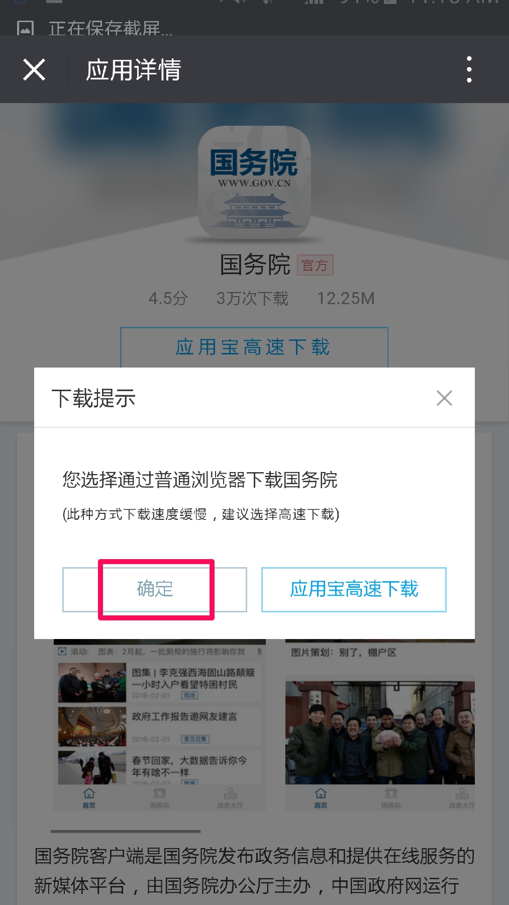 在下载提示中,选择“确定”