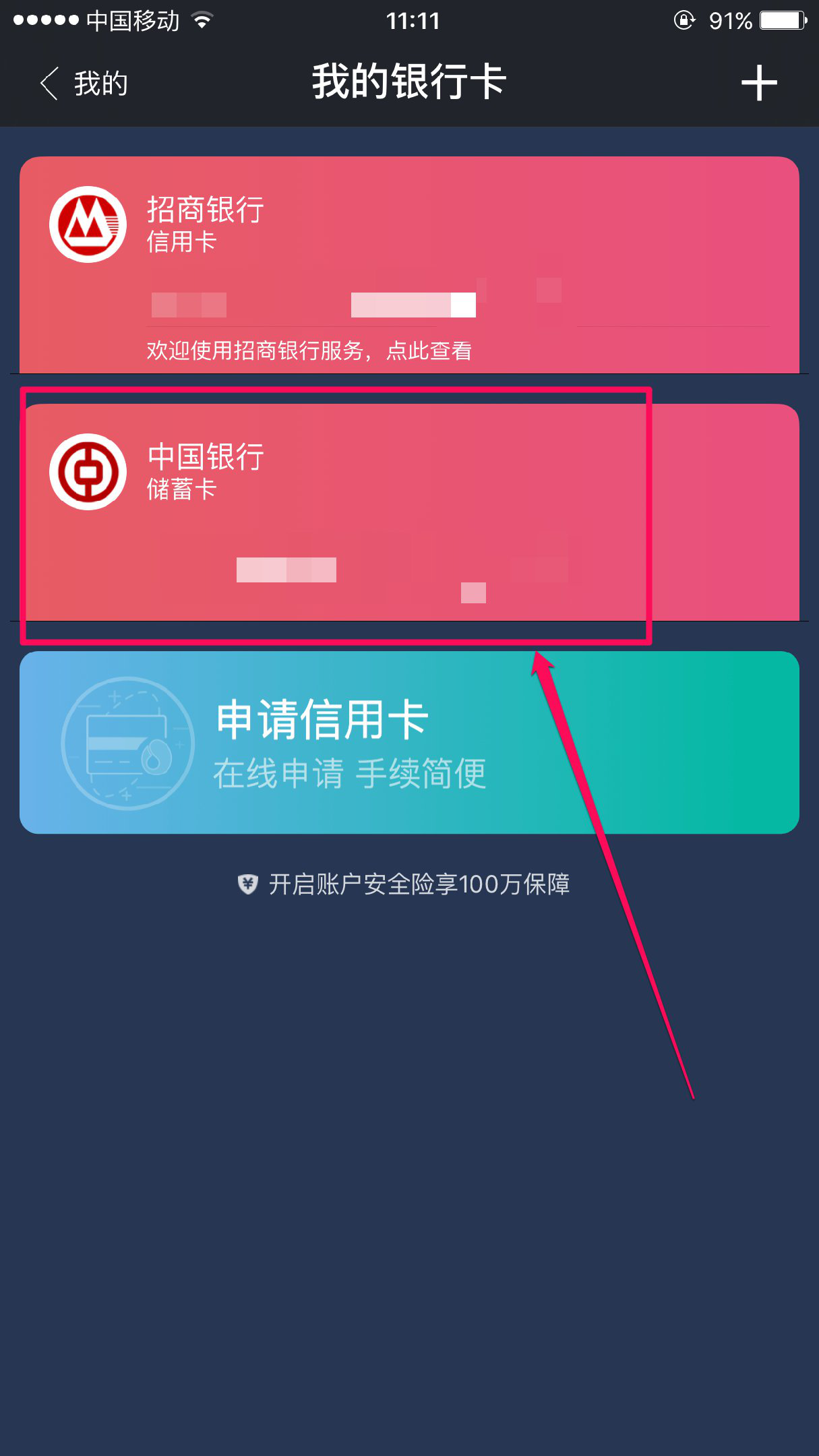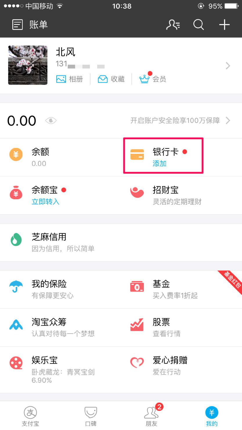 点击“银行卡”按钮