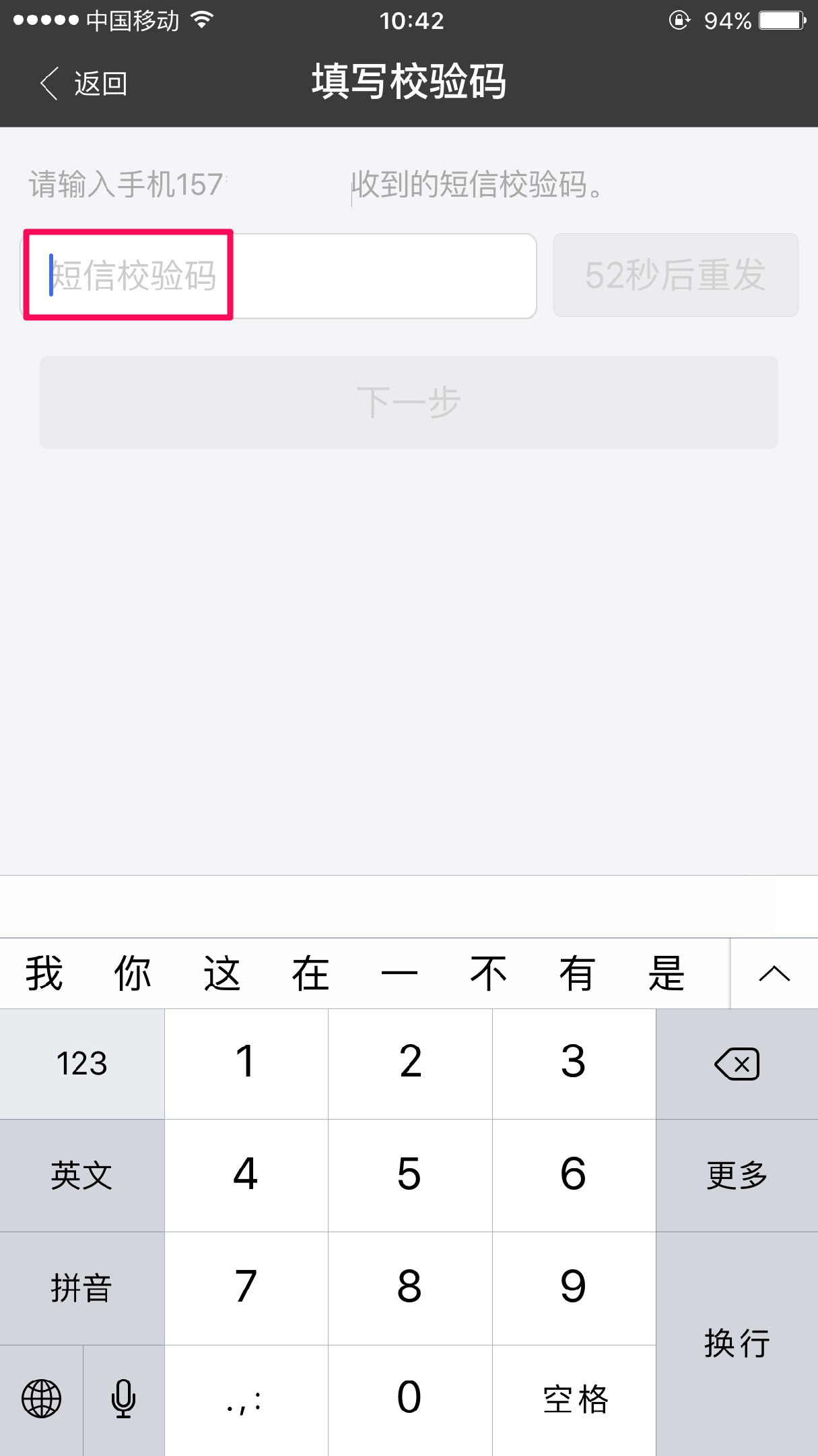您将在60秒内收到一条短信,短信内容为:“【支付宝】校验码506862,你的支付宝正在开通快捷支付,校验码很重要,打死都不能告诉任何人哦!唯一热线:95188”