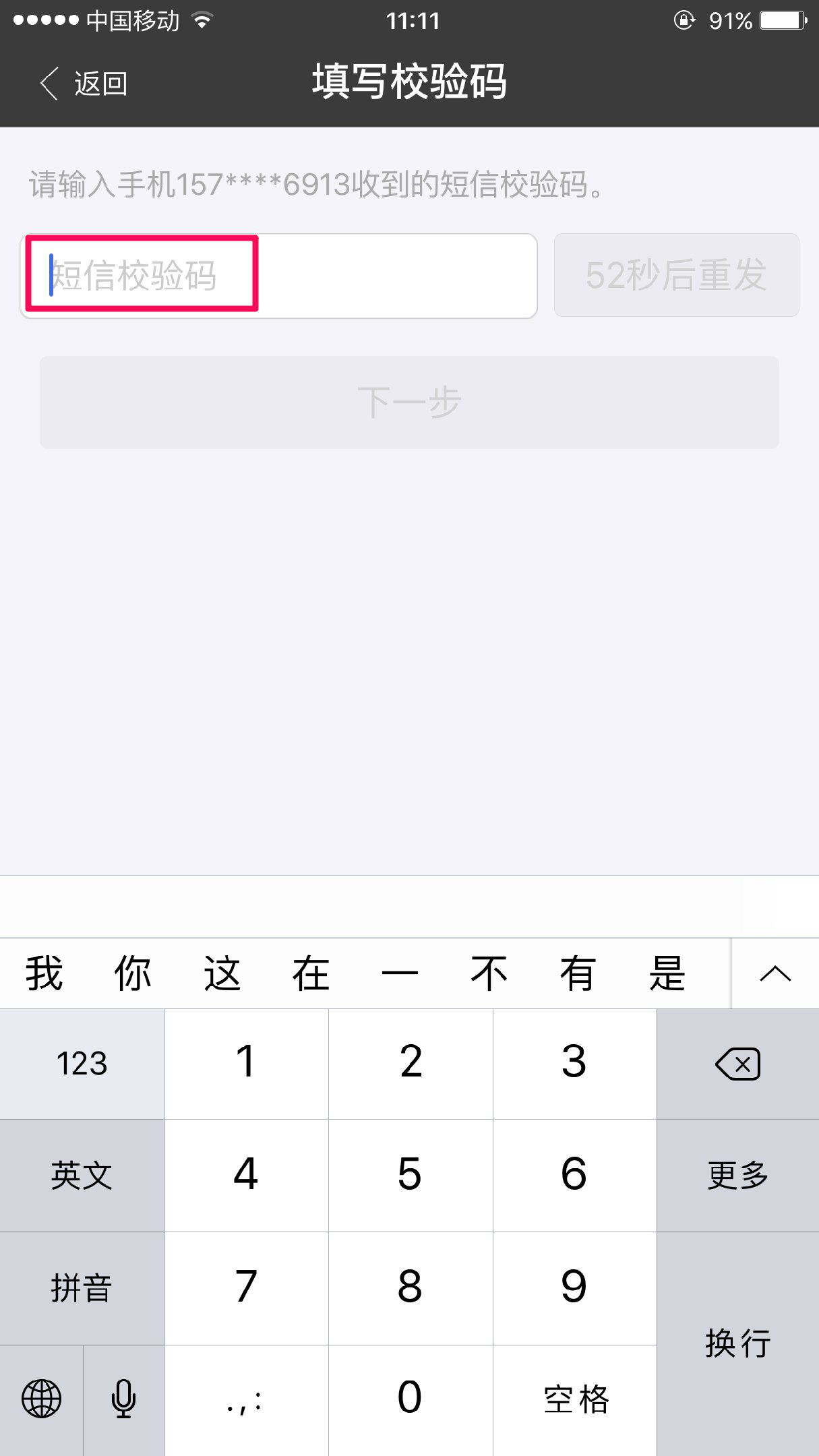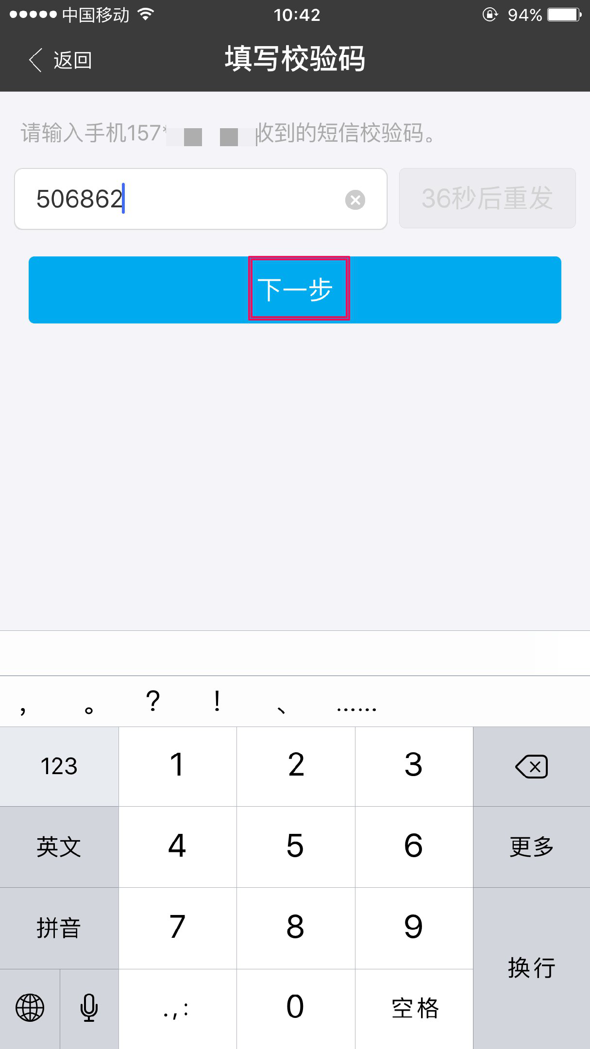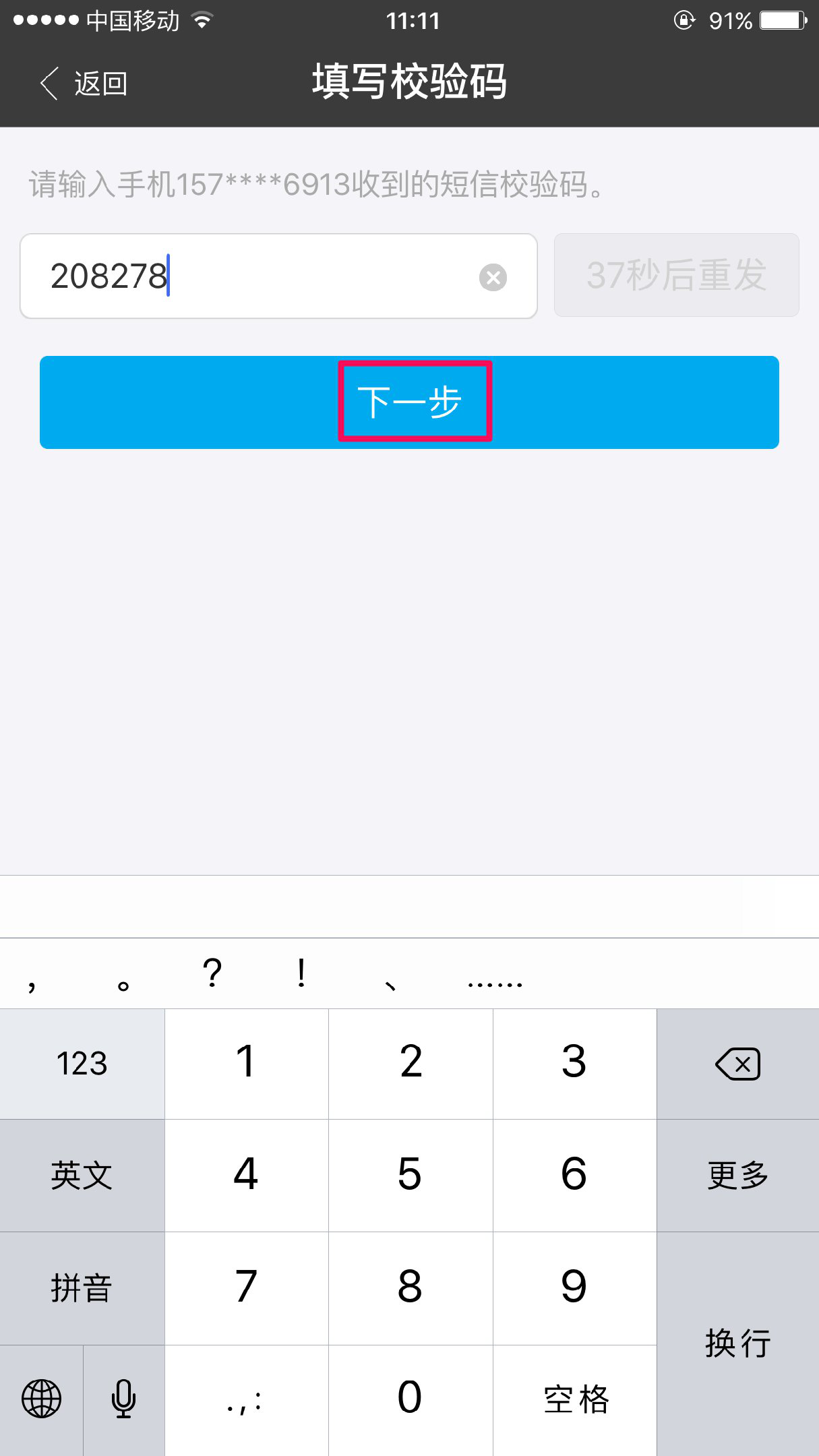 输入验证码后,点击“下一步”,即可完成添加储蓄卡