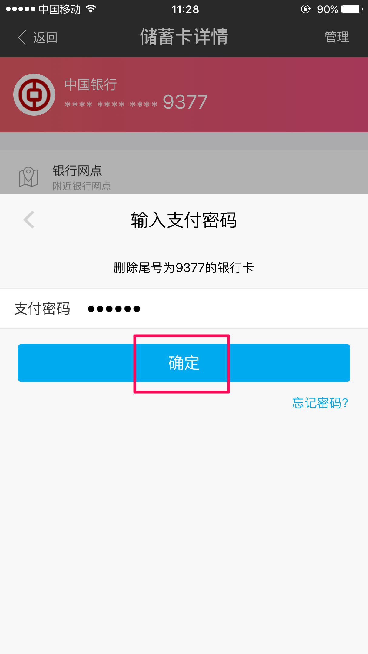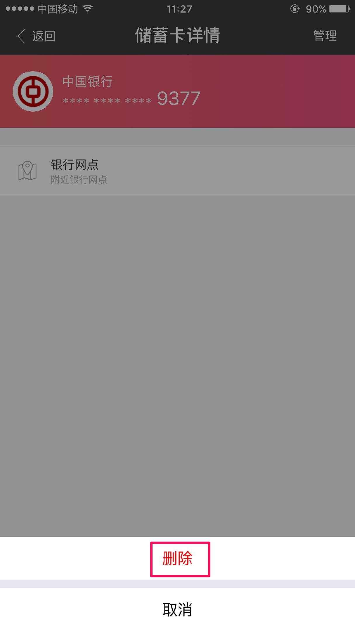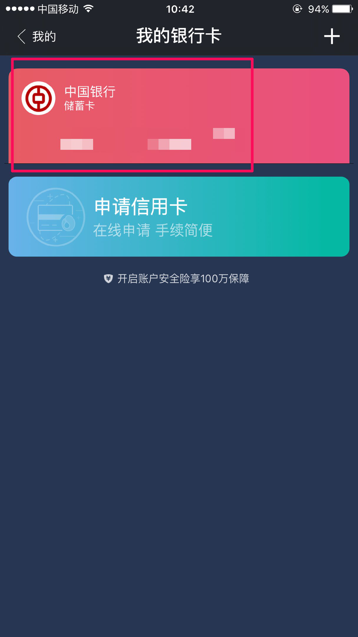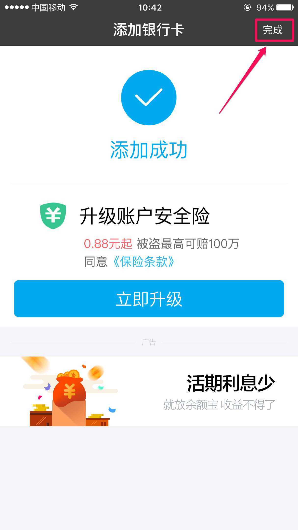 点击完成按钮,即可查看已添加的银行卡信息