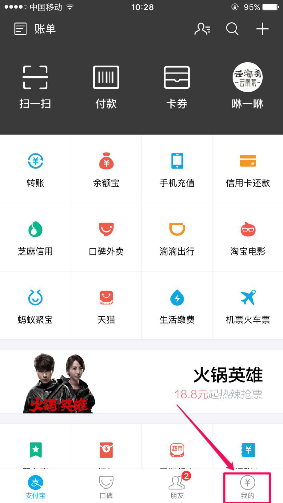 进入支付宝,点击右下角“我的”按钮