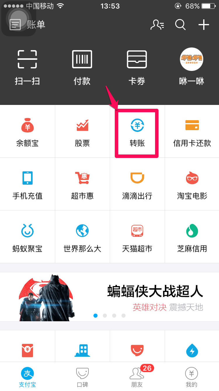 输入要转账金额,确认后点击“转账”。如果您有多张银行卡,可以点击蓝色小字,更换支付方式