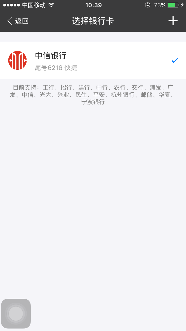 选择要转出的银行卡,目前仅支持工商银行、招商银行、建设银行、中国银行、农业银行、交通银行、浦发银行、广发银行、中信银行、光大银行、兴业银行、民生银行、平安银行、杭州银行、邮政储蓄、华夏银行、宁波银行