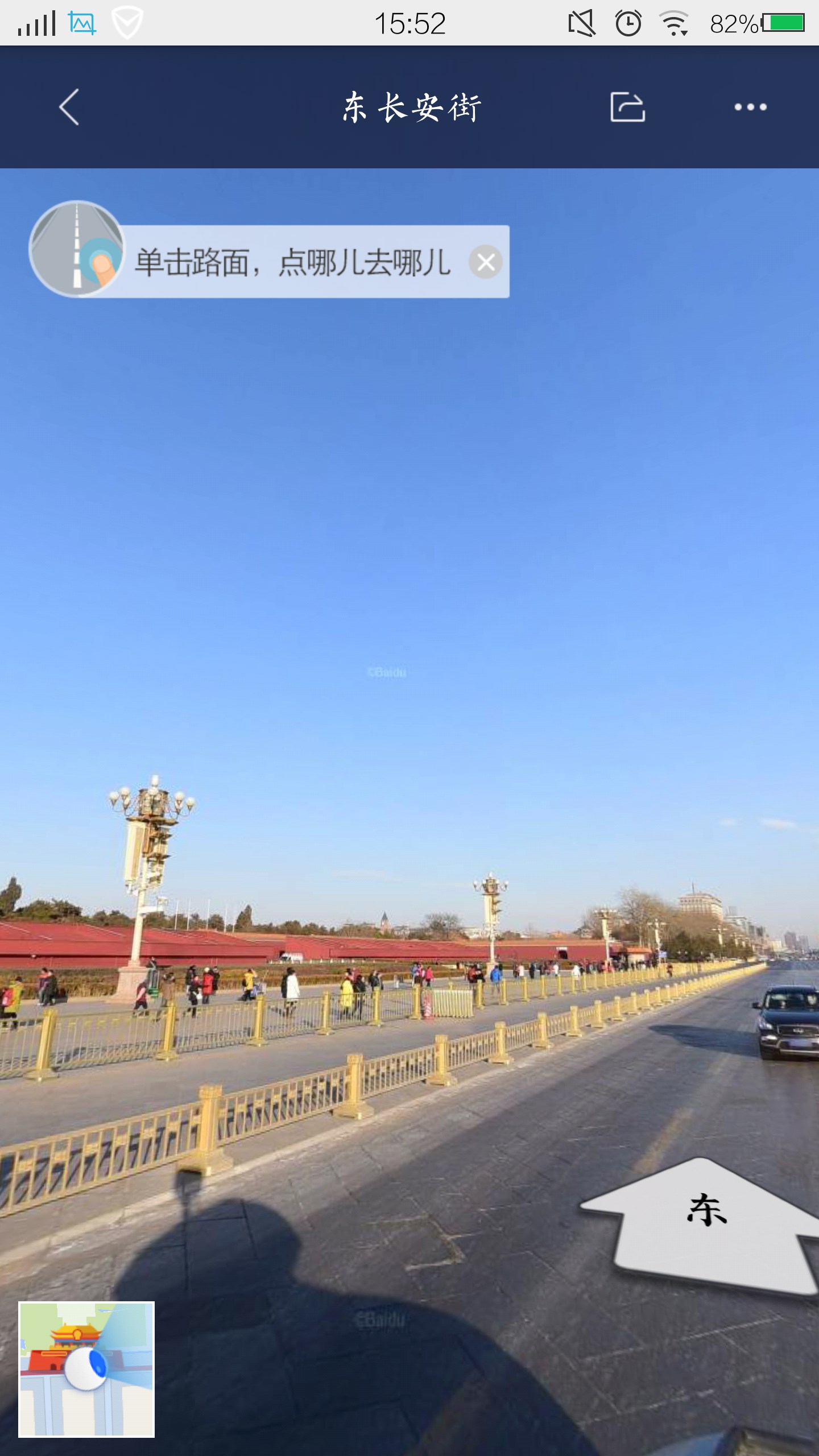 地图则会显示右边的街景,并且页面会指示方向是往东