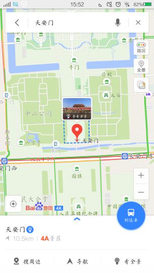 输入“天安门”,则下方会出现天安门的相关选项,点击第一个,进入目的地