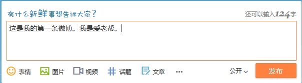 不同于发布微信朋友圈只能被您的好友看到,您发布的微博可以被任何人看到。修改微博的公开权限,请点击输入框右下角的“公开”按钮。有一些内容如果只分享给与您互相关注的好友,请选择“好友圈”。如果只想给自己看,请选择“仅自己可见”。如果您加入了微博群,可以选择只分享给您的群友看,这需要点击“群可见”。设置完毕,请点击“发布”,一条微博就成功发出了