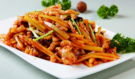 将以上调料拌和均勻后再加入白煮的凉菜中,如热鸡片、肚片、毛肚 、白肉丝等。鱼香味型咸鲜、酸辣、回甜,并要重点突出姜葱味。