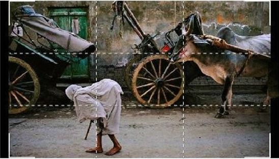 三分法。把你觉得有趣、有意思的焦点物体放在水平线和垂直线的交叉点上